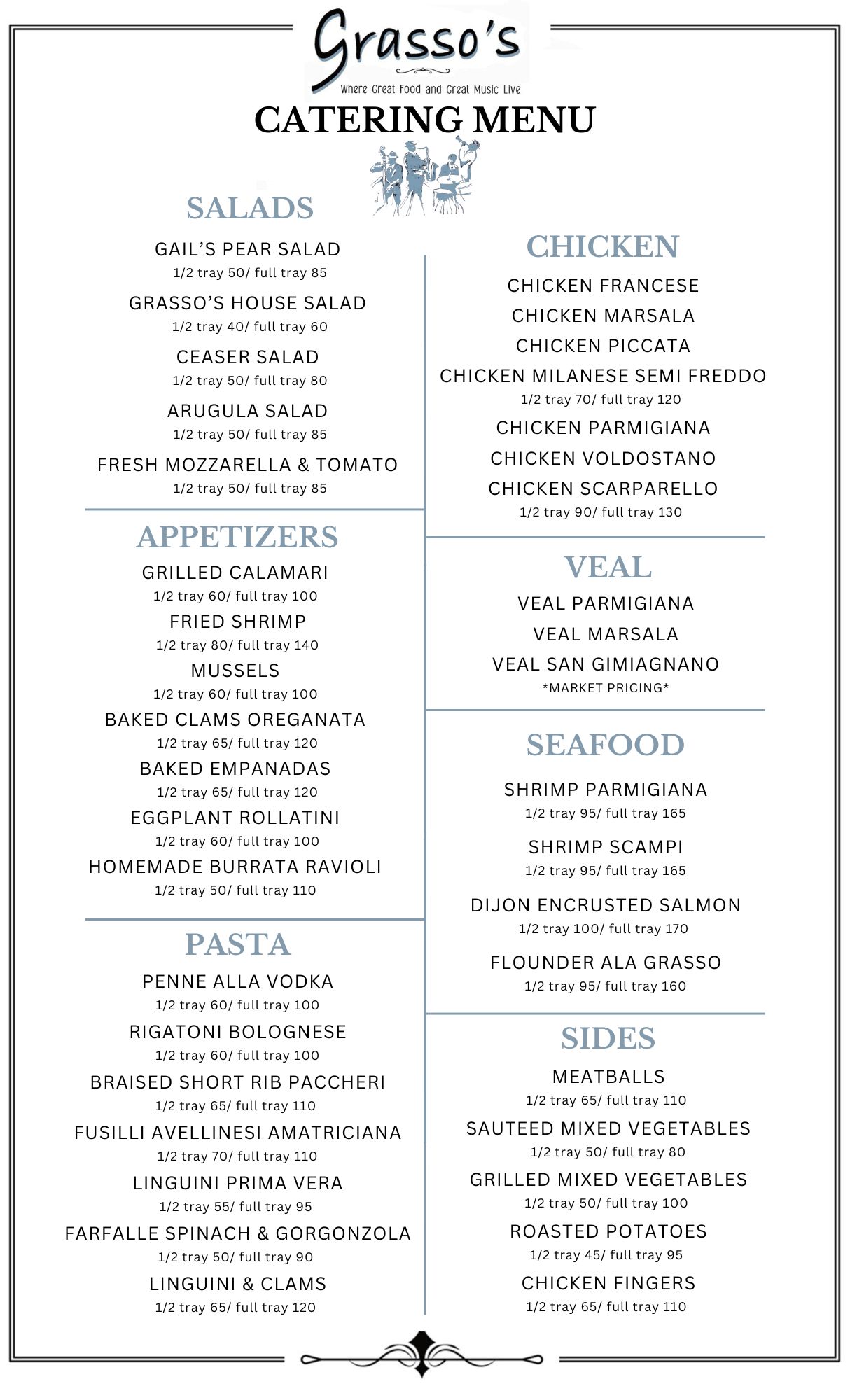Let us cater your next party! Whether it's a small or large gathering, we have a variety of food to suit any taste and occasion! If you don't see you something you're craving let us know and we will happily accommodate your request!