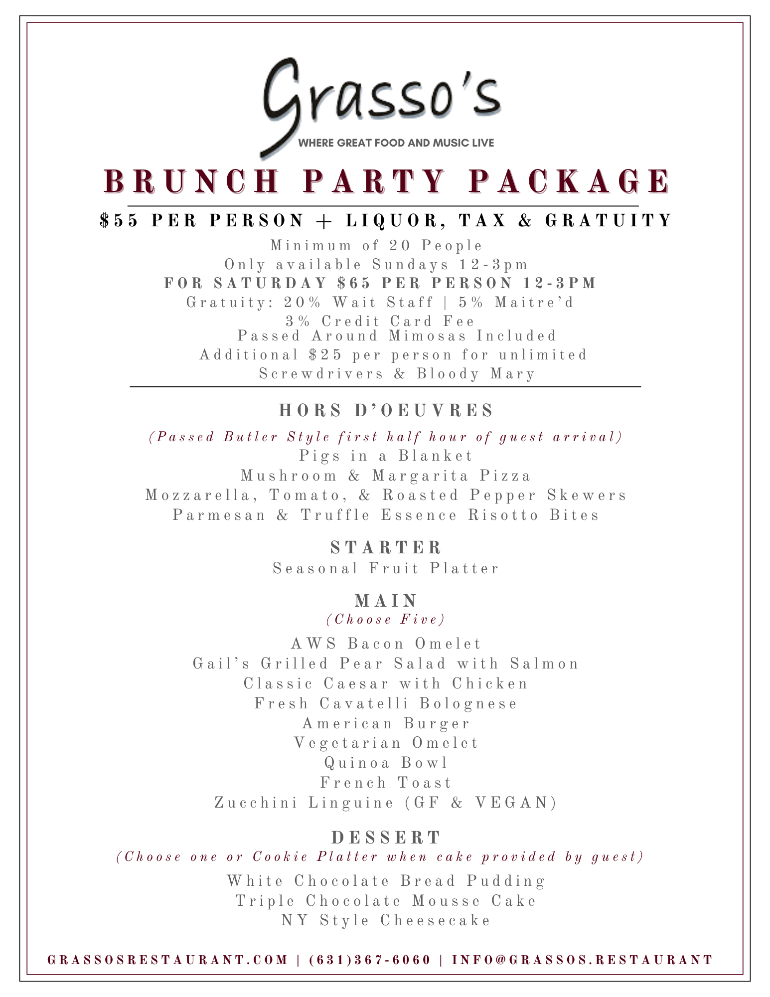 Make lifetime memories when you cater your family gathering, celebration, awards dinner or special event on Long Island with fine catering at Grasso's in Cold Spring Harbor, NY.